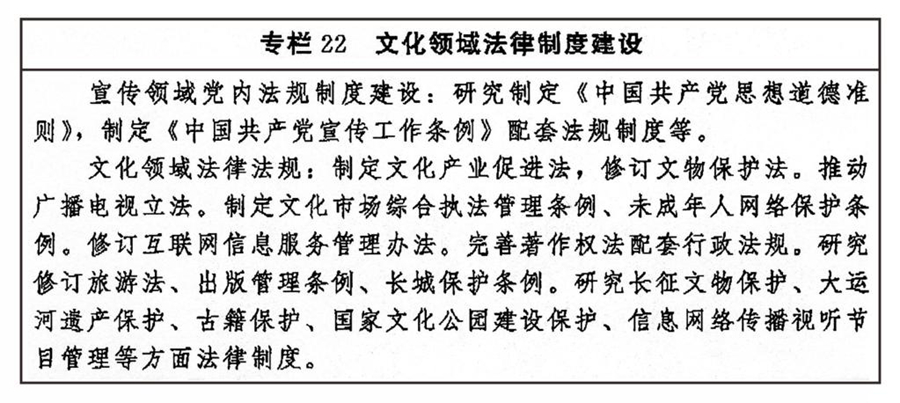 ——中国特色社会主义文化制度更加完善,文化法律法规体系和政策体系更加健全,文化治理效能进一步提升。